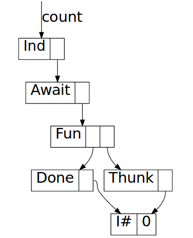 runPipeis (close to) the actualrunPipewe would normally use; we connect pipes that await or yield into a single self contained pipe that does neither.For these simple examples actually the optimizer can work its magic and the space leak doesn’t appear, unless