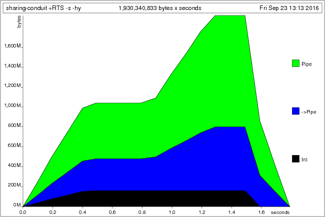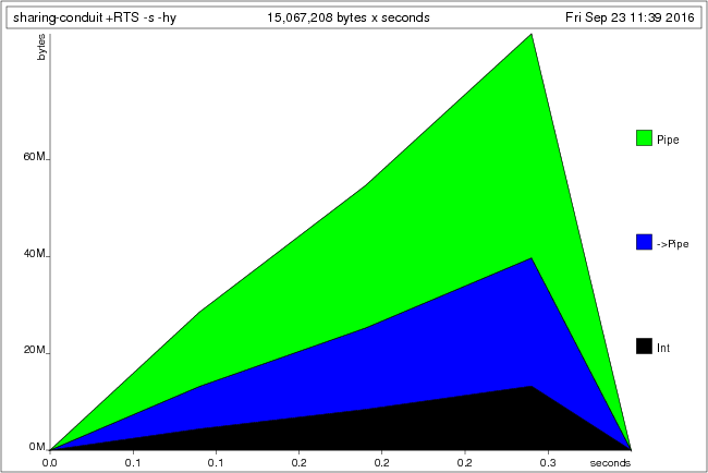 main = retry $ C.runConduit $ getConduit 1000000 C.=$= countConduit 0we again end up with a large space leak, this time of type Pipe and ->Pipe