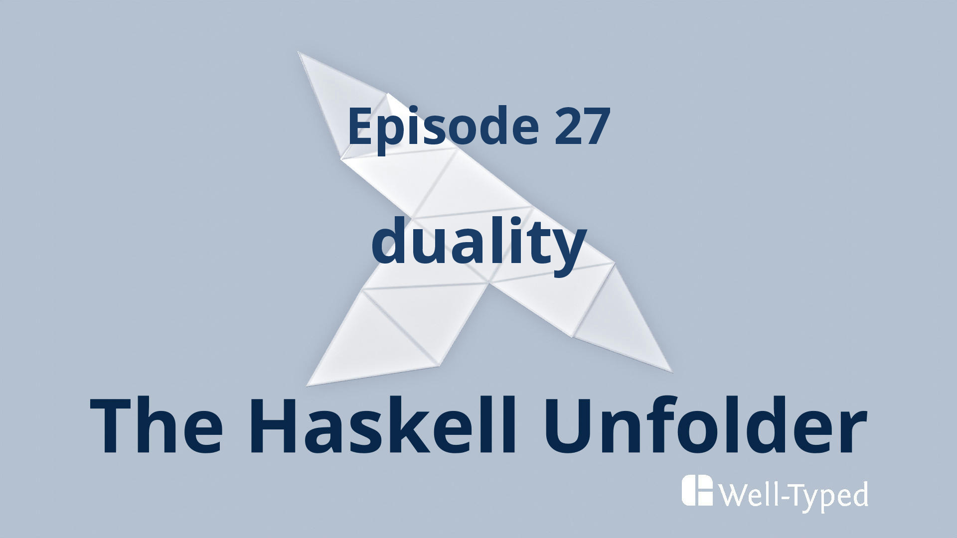 “Duality” is the idea that two concepts are “similar but opposite” in some precise sense. The discovery of a duality enables us to use our understanding of one concept to help us understand the dual concept, and vice versa. It is a powerful technique in many disciplines, including computer science. In this episode of the Haskell Unfolder we discuss how we can use duality in a very practical way, as a guiding principle leading to better library interfaces and a tool to find bugs in our code.