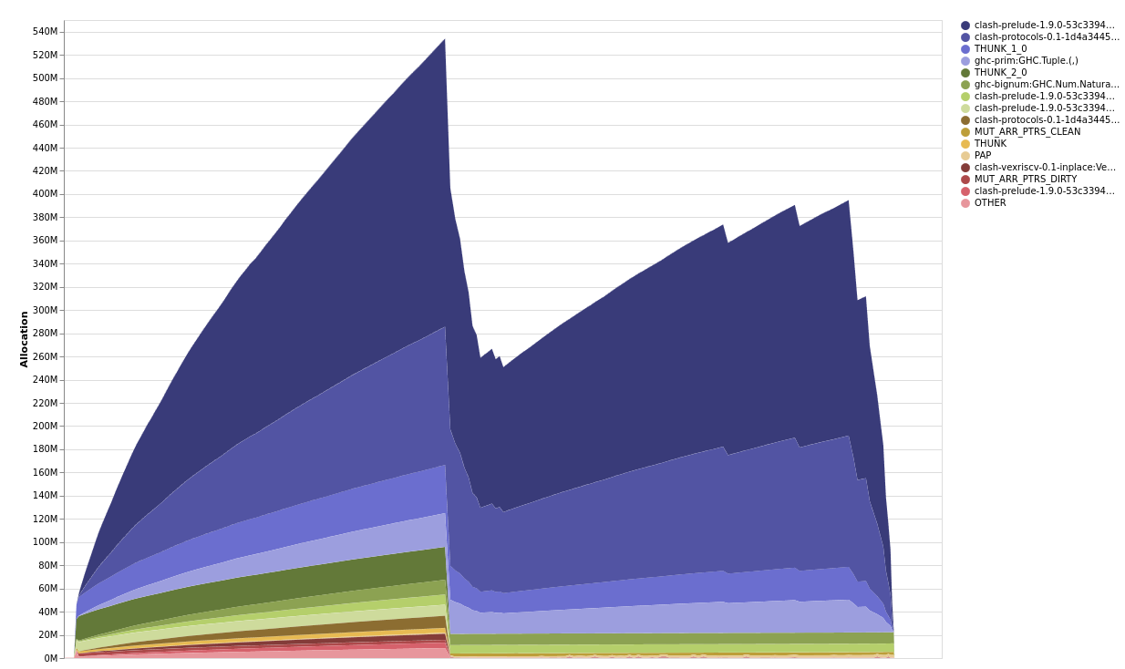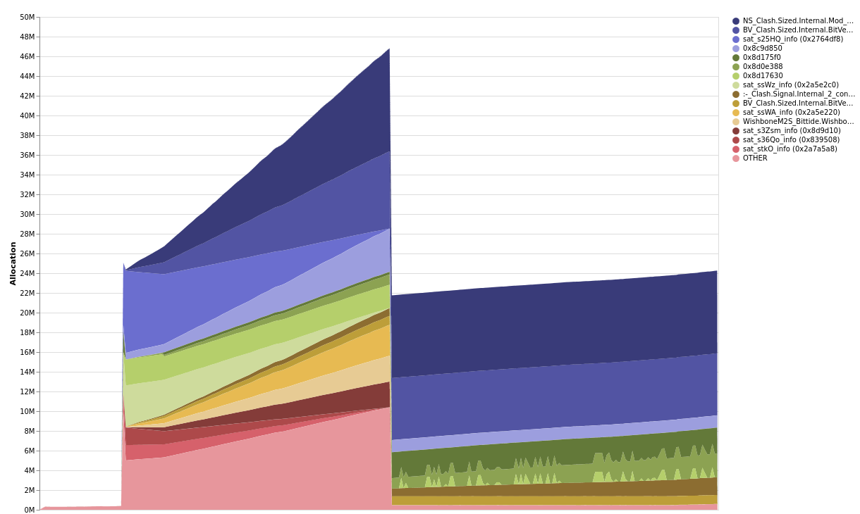 Without a clear memory invariant, I wanted to get a better idea about these top 4 bands of allocation, I had a hypothesis at this stage that the THUNK closures were contained within tuples, which were retaining the WishboneS2M and :- constructors.